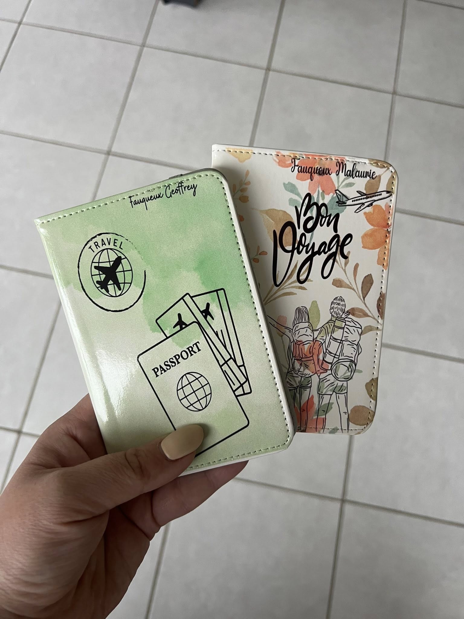 Format pratique : protège-passeport + 2 emplacements pour cartes (CB, carte d’embarquement, etc.).